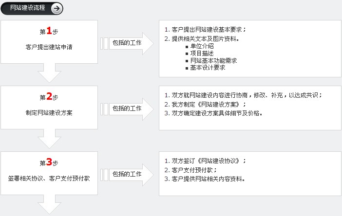 我們通過專業(yè)的網(wǎng)站建設流程為您提供優(yōu)質(zhì)的服務,我們的服務流程可以控制整個項目的進度和保障客戶的權益。